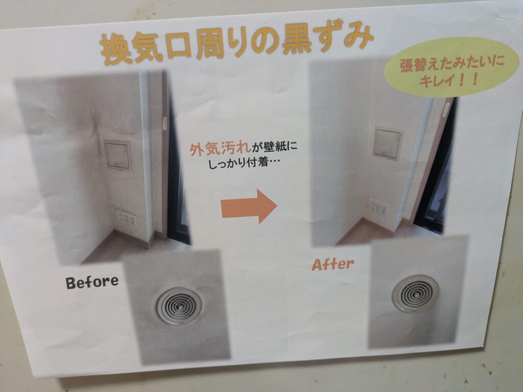 換気口周りの黒ずみや、日常生活で気になる壁紙の汚れも、プロの技術で見違えるほどキレイに。まずはお気軽にご相談ください。